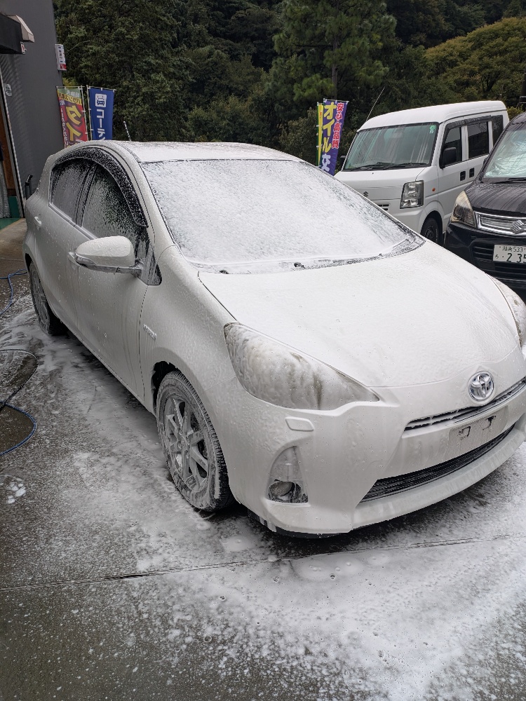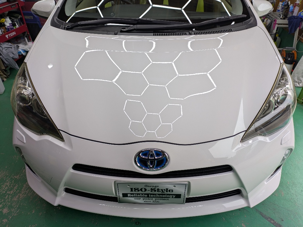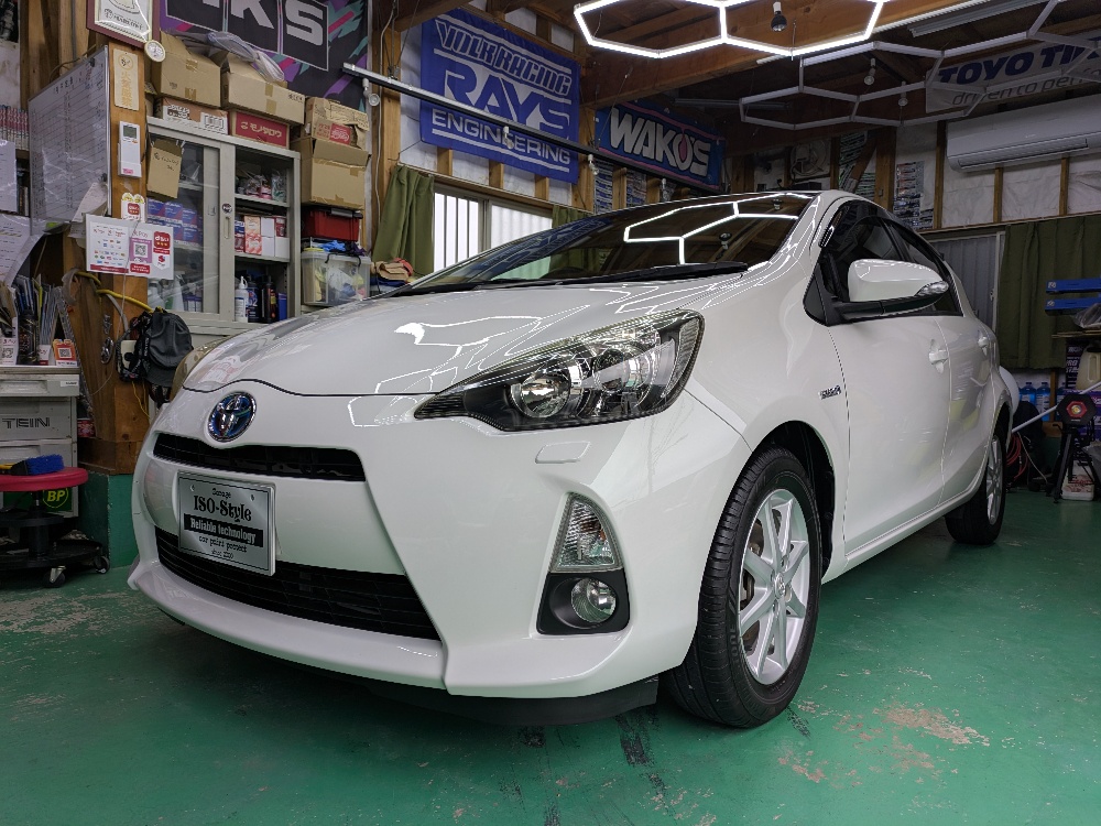 今回のお車はTOYOTA AQUAのメンテナンス洗車プランとウィンドウコートになります。