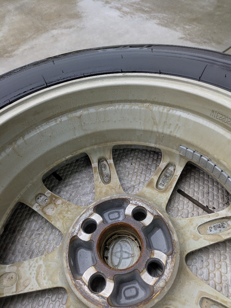 ホイールも通常使用する酸性のクリーナーでは歯が立たず、強力過ぎて普段使用しないクリーナーの2番目に強力なクリーナーにて汚れの除去をしました。瞬殺でした(笑)