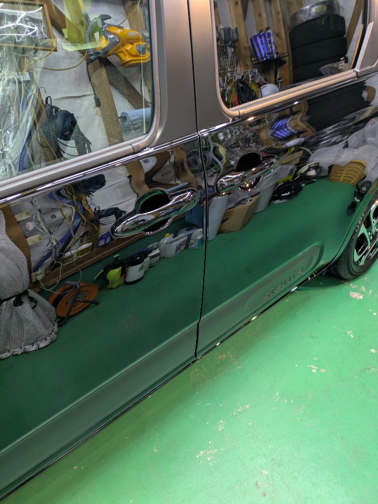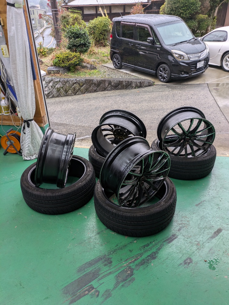 誰しも起きて欲しく無い事故等により板金やパネル交換した部分の保険適用の再コーティングと、今や普通?になりつつある20インチタイヤ交換です。
