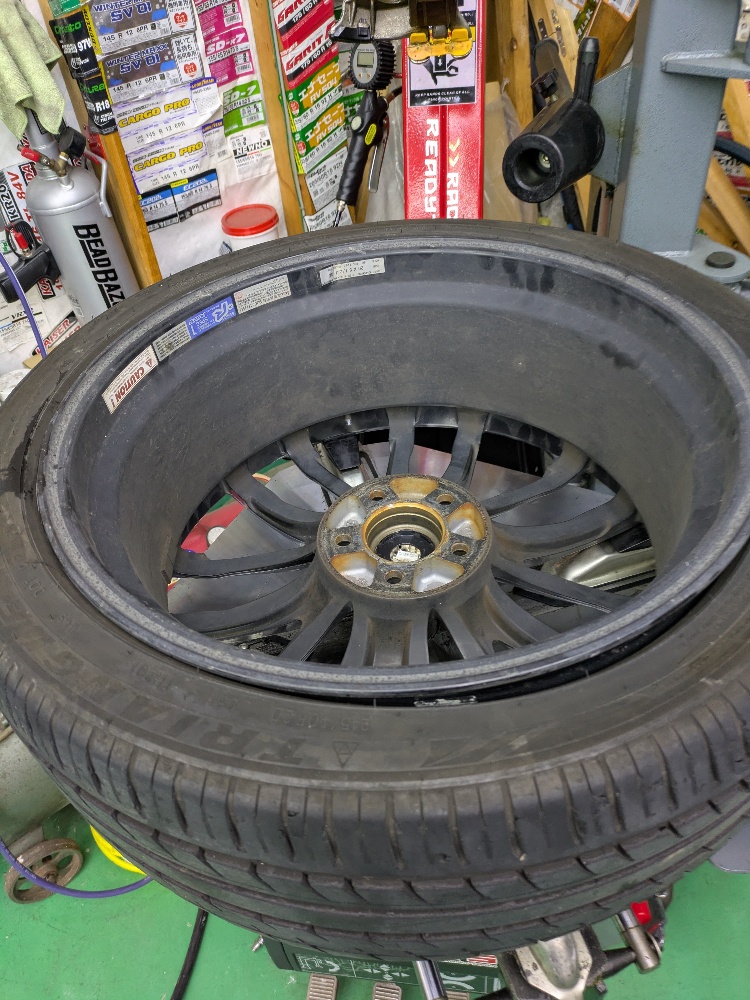 何時もの通りにタイヤを外したらホイールの洗浄、ゴムかすの除去をし組込みです。