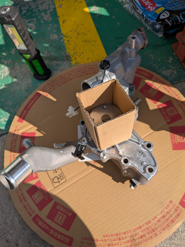 ウォーターポンプ、新品に交換です。