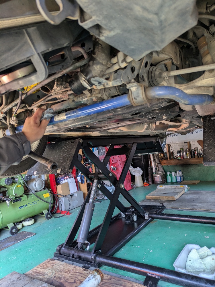 リフトで上げクーラントを抜き、ラジエーターも外しました。