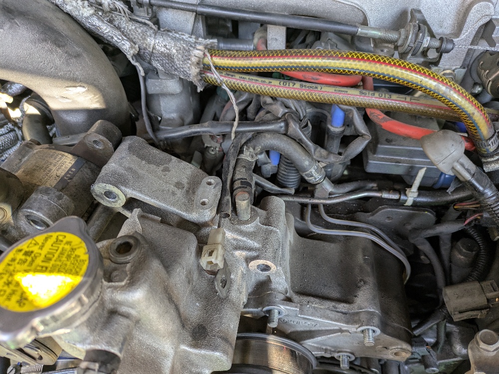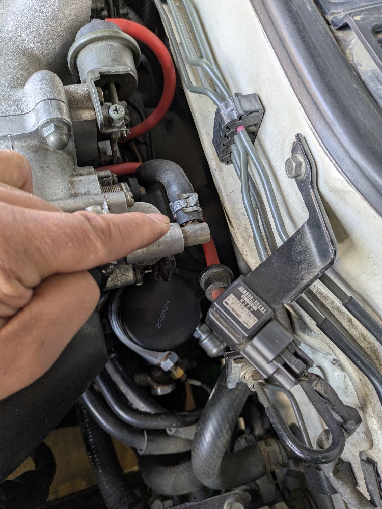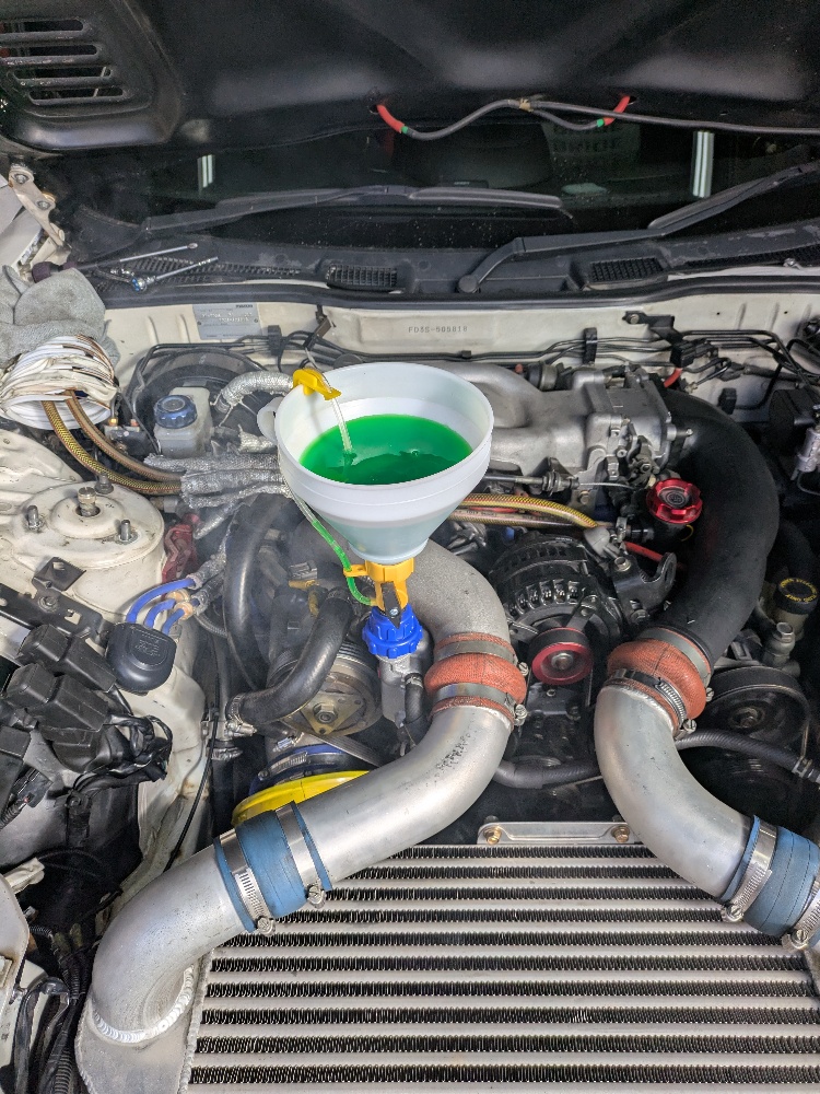 ちなみにFD3Sのエア抜きをする場合、スロットルボディに来ている配管を外し、ホースと配管のどちらからもクーラントが出るまで補充してからエア抜きすると早いです。